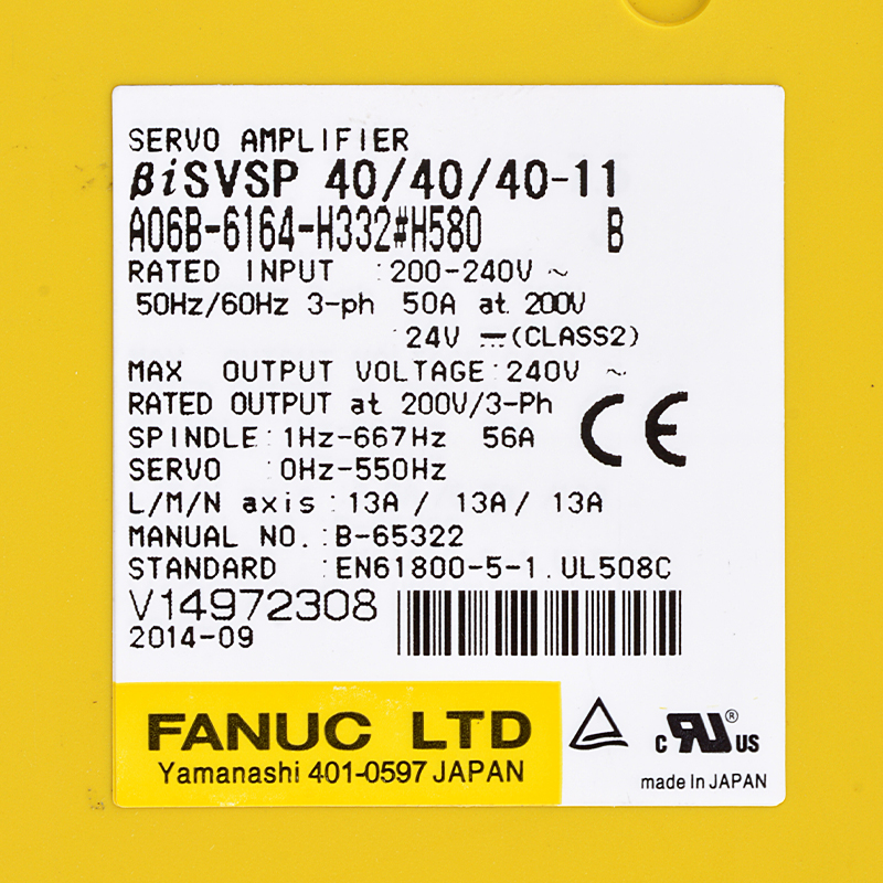 Fanuc დისკები A06B - 6164 - H332#H580 Fanuc BISVSP 40/40/40 - 11